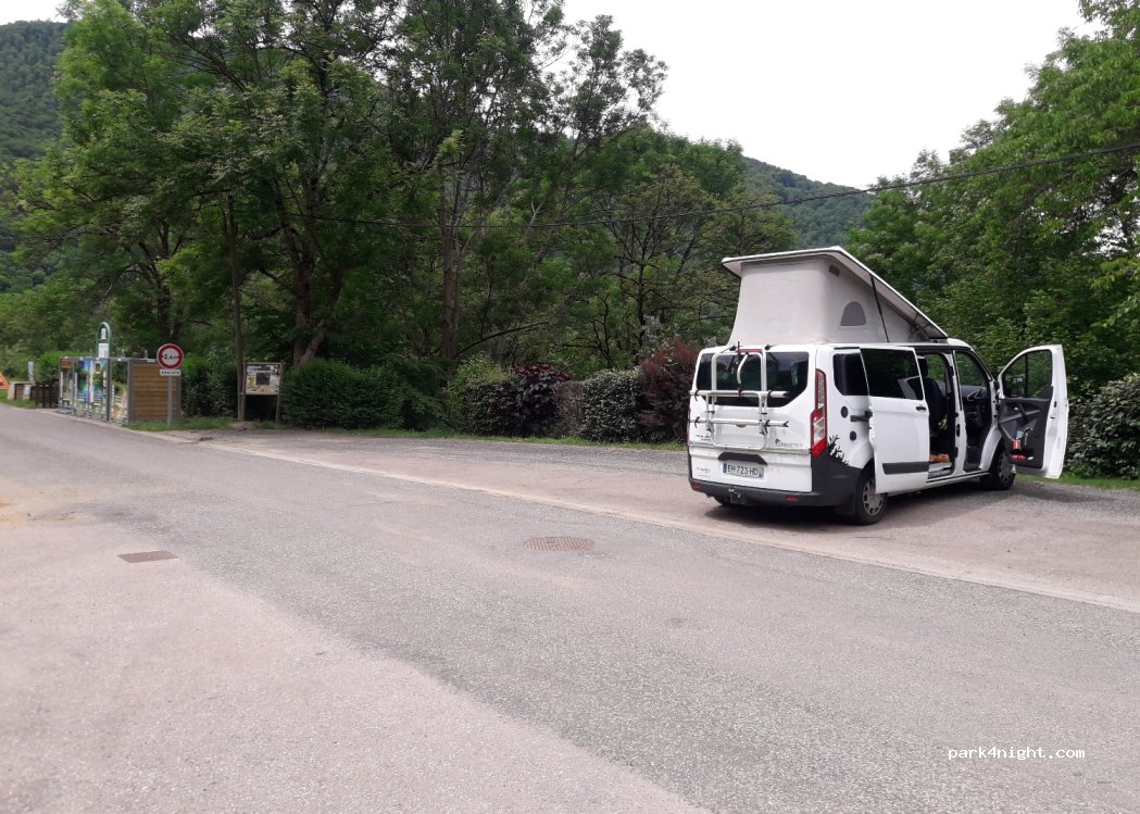 Parking à l l'entrée du charmant village de Ayet, nous y sommes juste pour le midi , mais panneau autorisant stationnement 72 hrs.