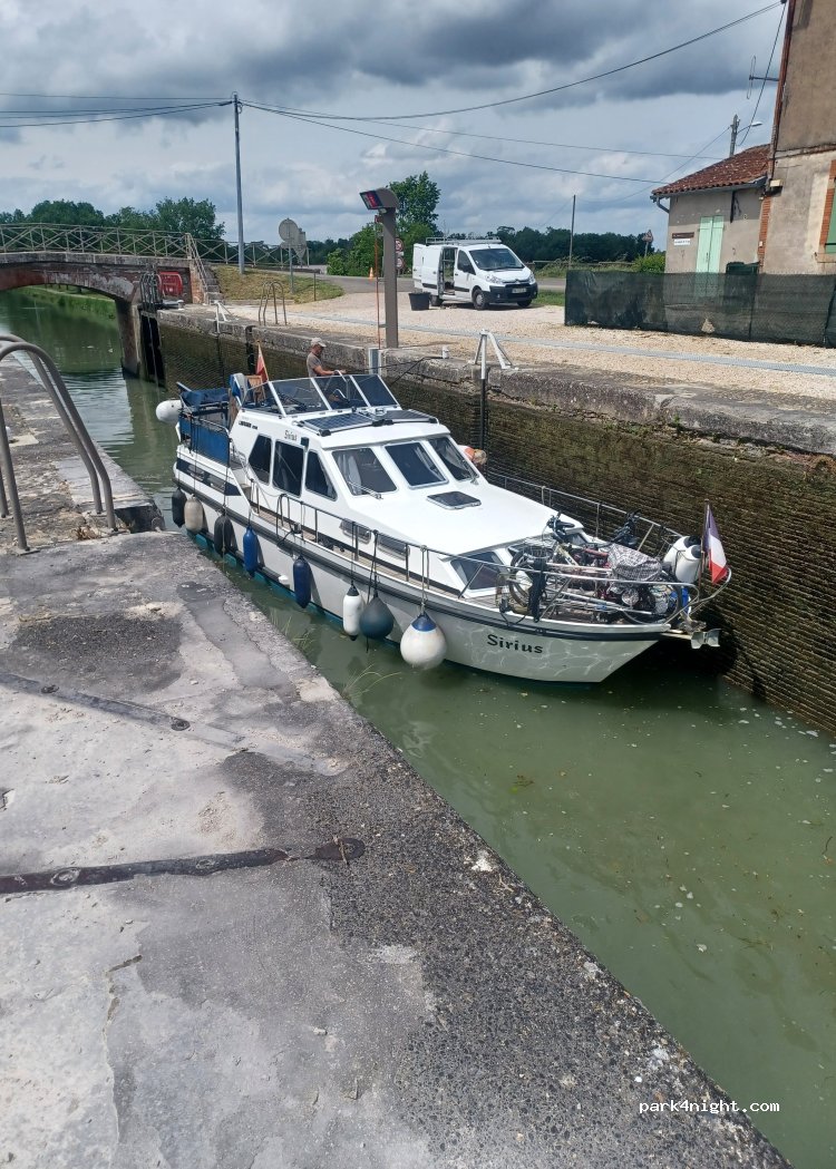 Très grand emplacement ombragé. À la croisée du canal des deux mer et du canal de Montauban, très bien pour le vélo. À ne pas manquer le restaurant Christian Constant le long du canal à Montech.