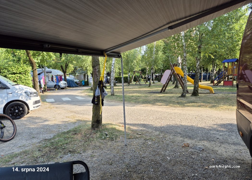 The camping is a little bit crowded, but this is not a big deal, if you travel with camper, The main advantage is plenty of shadows, all over the camping. Location is very good - 12min walking to center, to big shops, to everything. We spent 6 nights. If you have not a reservation, you have to plan to arrive at 11am.