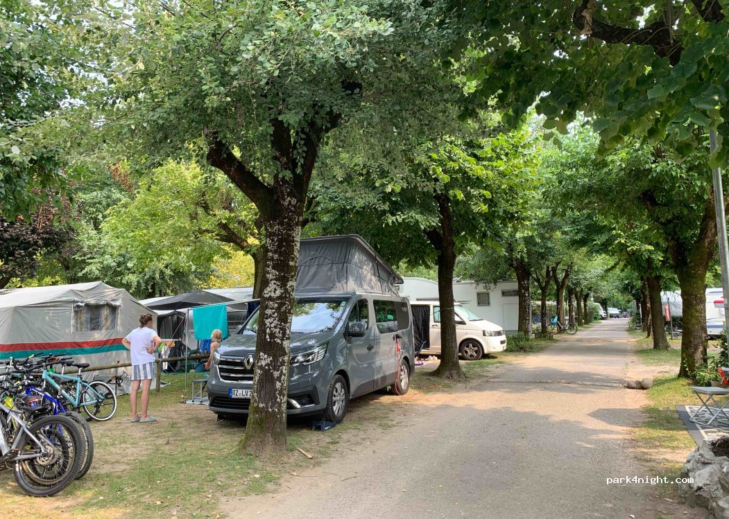 Camping au pied du lac et d’une plage d’herbe et piscines.Bien placé pour découvrir le coin, prévoir répulsif moustiques. animation autour du camping (concert le soir)Petit emplacement avec peu d’ampère, mais ombragé si on le souhaite. Sanitaires « dans leur jus » mais propre et avec papier. Supérette avec le nécessaire et de bons croissants italiens. Un peu cher, mais comme partout dans ce coin.