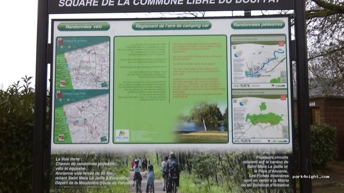 Bel emplacement pour réaliser les services gratuits, plan d' eau juste à côté. très agréable. Merci à la mairie de Saint-Mars-la-Jaille