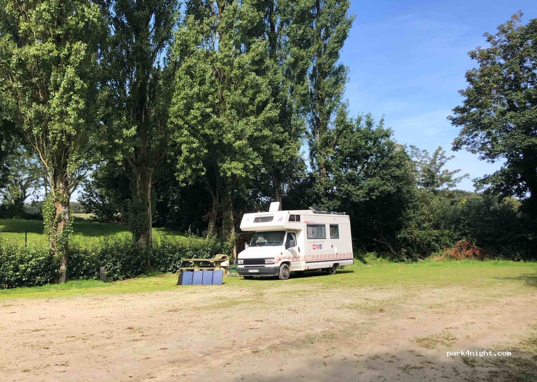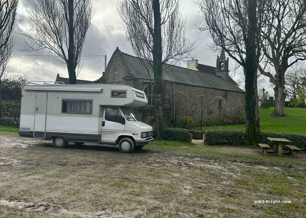 Emplacement calme et plat à côté d’une chapelle (néanmoins une habitation est juste derrière la chapelle). Route peu passante à côté. On a passé une très bonne nuit :)