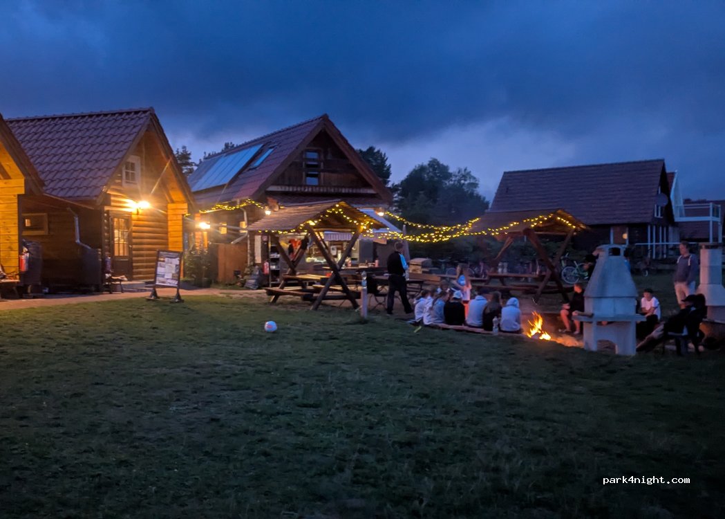 schöne Blockhäuser, große Feuerstelle, Grillmöglichkeiten, große Außenküche für alle, viele gemütliche Sitzmöglichkeiten preiswerte Unterkunft, saubere Toiletten und Duschen im Blockhaus