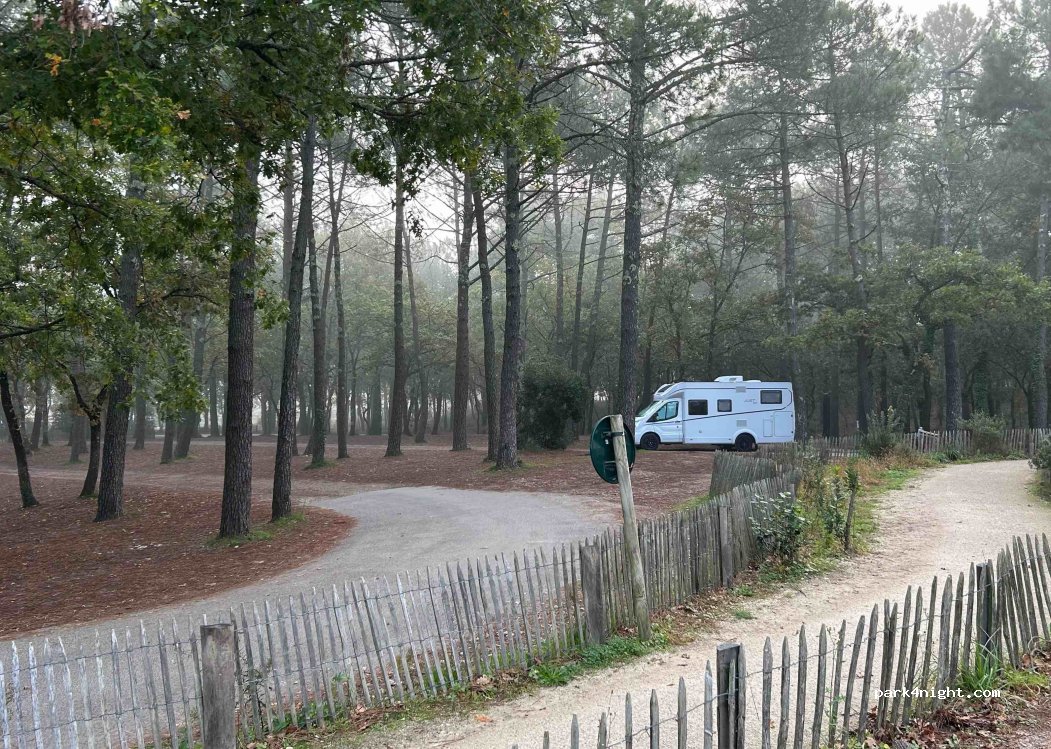 Parcheggio strategico per visitare la Duna di Pilat, condiviso con le auto sotto una bella pineta, ben curato, vi sono alcuni negozi e servizi igienico, non è possibile dormire e non si può effettuare camper service.
