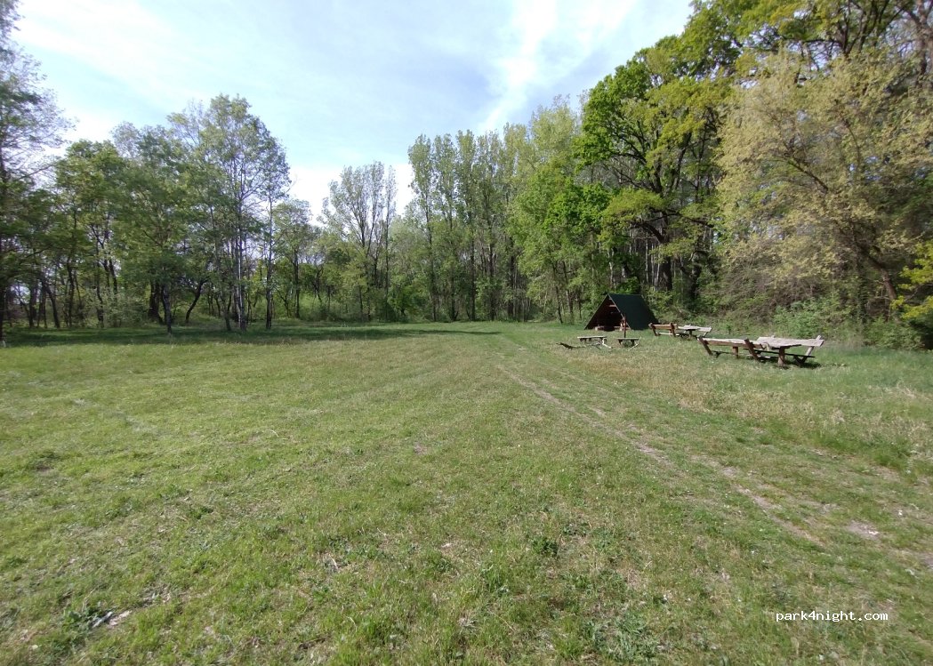 Sehr gemütlicher Picknickplatz, umgeben von Bäumen und von allen Seiten von den umliegenden Straßen und Häusern isoliert. Geeignet für Wohnmobile. Der einzige Weg dorthin ist eine unbefestigte Straße. Es gibt wenige Bänke und die Hütte vor Ort. Idyllische Waldlichtung. Ruhig in der Nacht.
