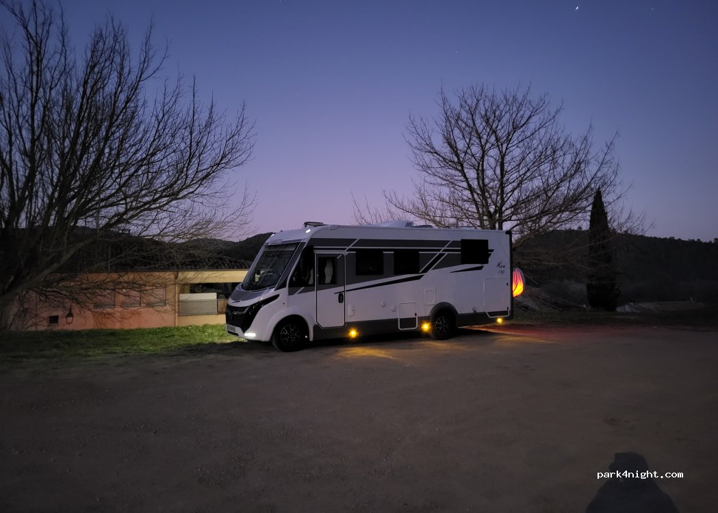 Très beau petit village c'est à la fontaine du village qu'a était tourné la scène du filmé Manon des sources, parking en terre avec plusieurs places de stationnement, j'y ai passé une très bonne nuit ( lieux très calme ) poubelles containers à verres sur le parking