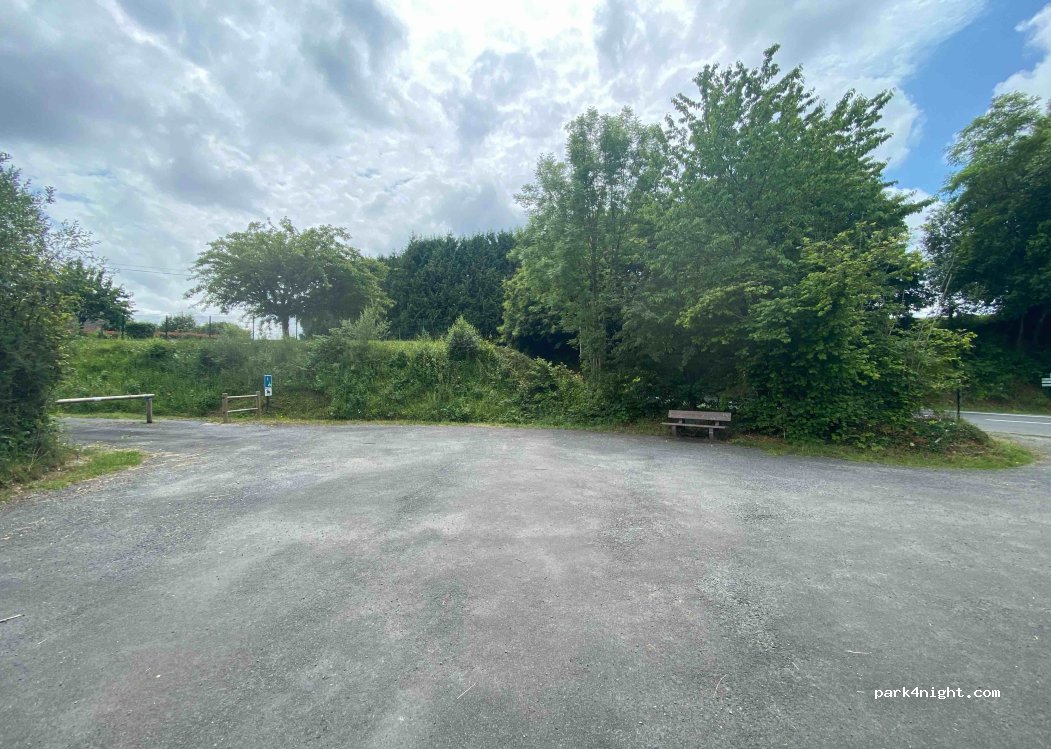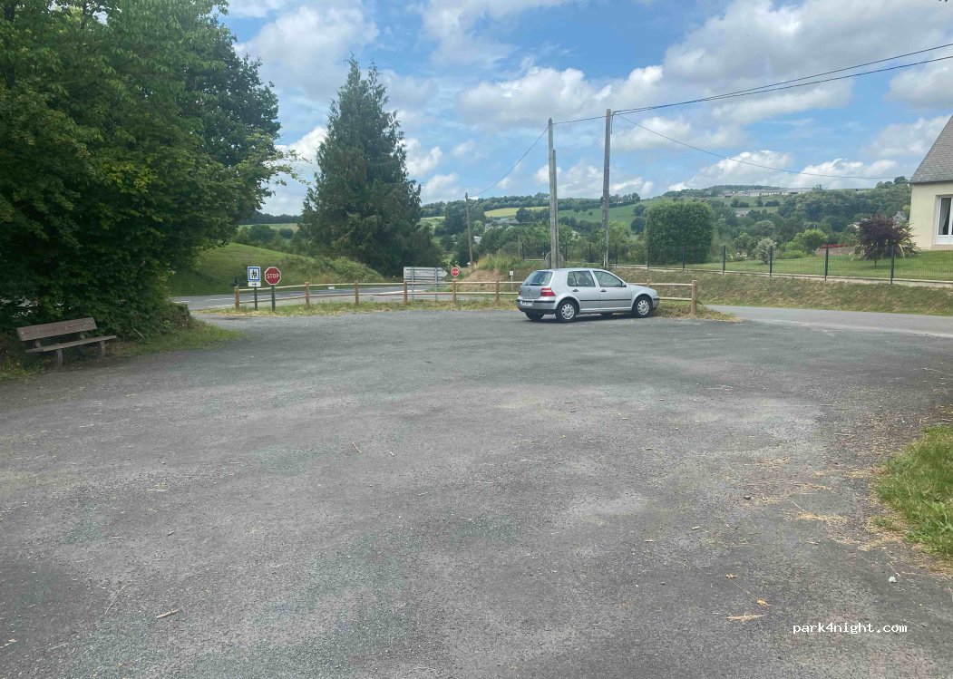 Der Parkplatz ist doch etwas kleiner, als er auf den Bildern erscheint. Leider ist er auch etwas schräg, aber mit Auffahrkeilen lässt sich Abhilfe schaffen. Trotz der beiden angrenzenden Straßen war es ausreichend ruhig um gut durchzuschlafen. Ein paar Anwohner sind vorbeigekommen, aber die scheint es nicht gestört zu haben.