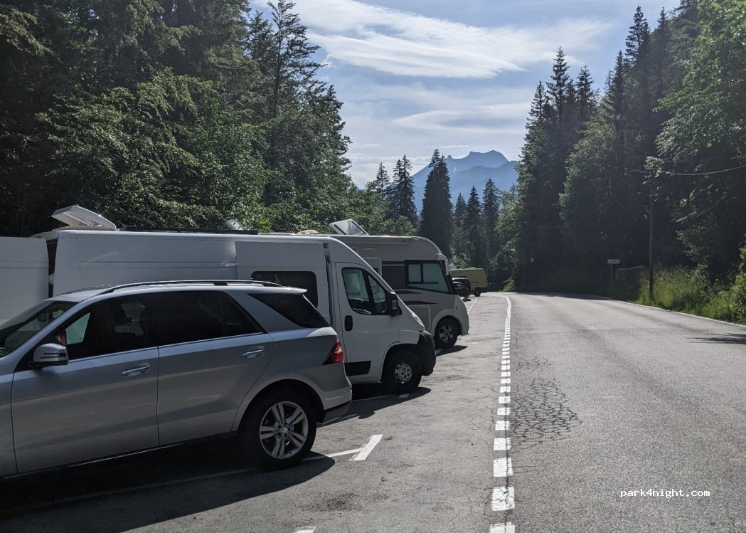 En cette saison et avec la pluie j'ai pu m'y garer sans problème pour faire le tour du lac .Parking bord de route