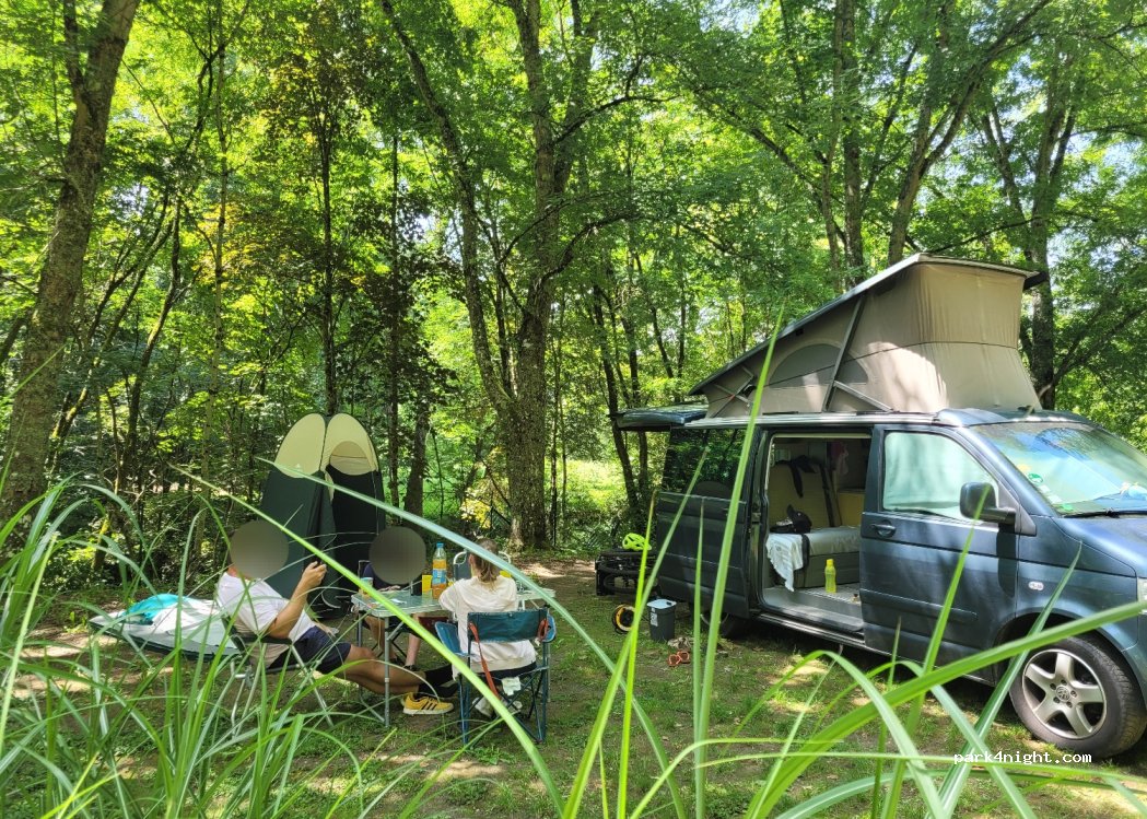 avis un peu mitigé les emplacements proposés pour les campings car et fourgons au mois de juin sont juste à côté de la rivière qui fait assez de bruit donc pour les personnes qui ont le sommeil léger attention du plus si vous venez que pour une nuit vous aurez du mal a pouvoir ressortir du camping car il est compliqué d'avoir un badge d'accès pas de papier toilette douche assez grande