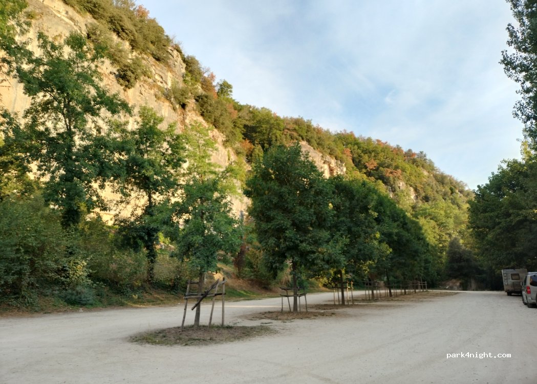 Parking in front of the Grotte du Grand Roc on the banks of the Vézère. Quiet and shaded parking but no amenities.