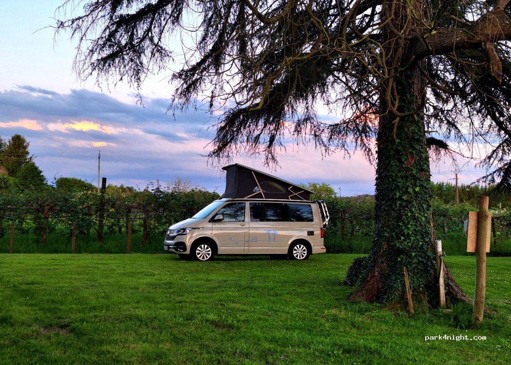 Un gentil accueil dans cette jolie ferme. Une bonne étape ombragée au calme. De la verdure et des champs de kiwis. 10€ pour deux personnes avec électricité (prises standard, pas de prises caravane, il faut un adaptateur). Je recommande fortement