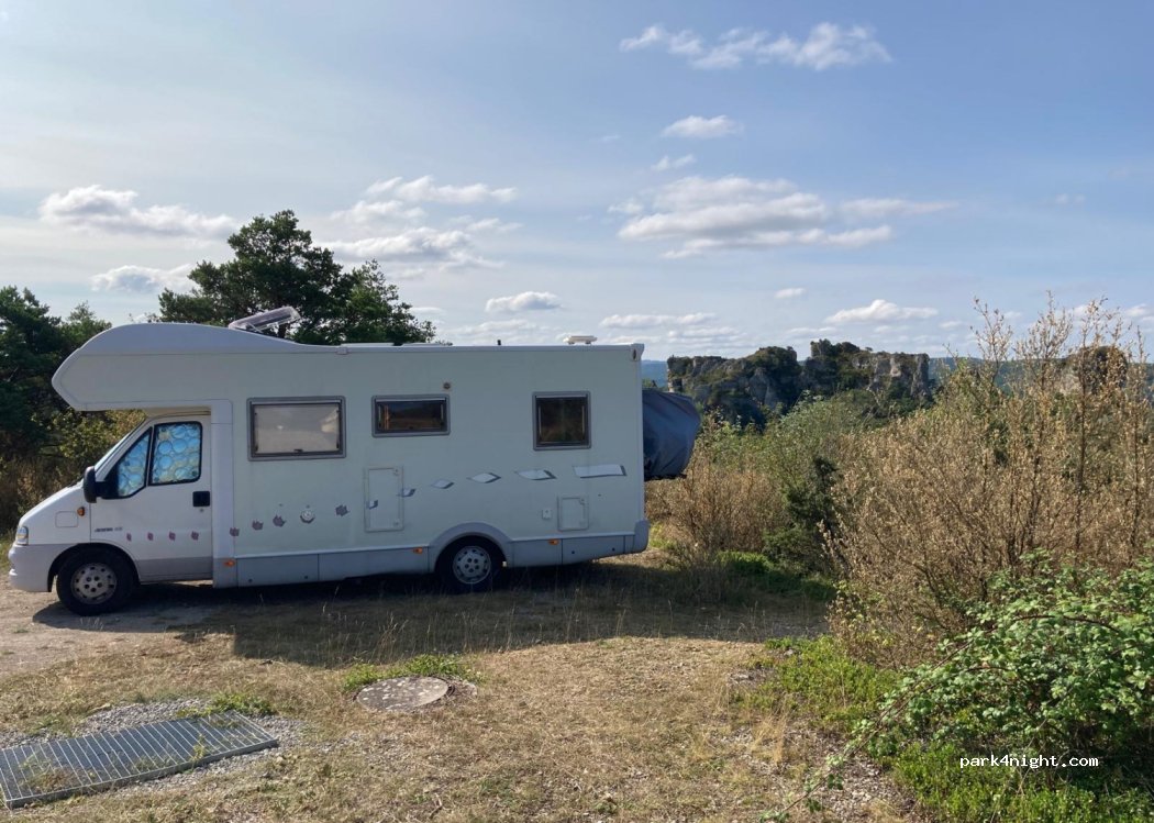 Emplacement parfait sur le parking du Chaos de Montpellier le vieux, vue sur une partie du site, au calme et sans vis à vis, toilettes sur le parking du bas. Arrivés la veille vers 20h, le site était fermé. Nous sommes passés par la sortie qui était restée ouverte (normal ou coup de bol ?) et sommes allés nous installer sur le parking réservé aux camping-cars (parking du haut). Le lendemain, nous sommes allés à la caisse et avons payé 7 € par personne, prix de la visite du site.