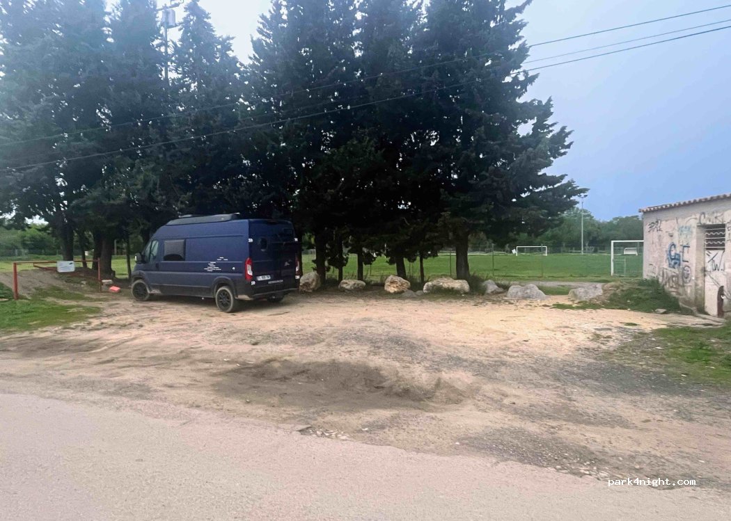 Es ist ein kleiner Parkplatz, auf dem man eine ruhige Nacht verbringen kann, sehr wenige Mücken und ein paar Spaziergänger. Es ist flach.