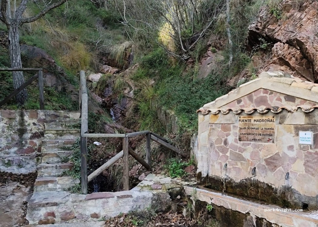 Fuente de 3 chorros en la misma carretera, pequeña zona de 2 aparcamientos.