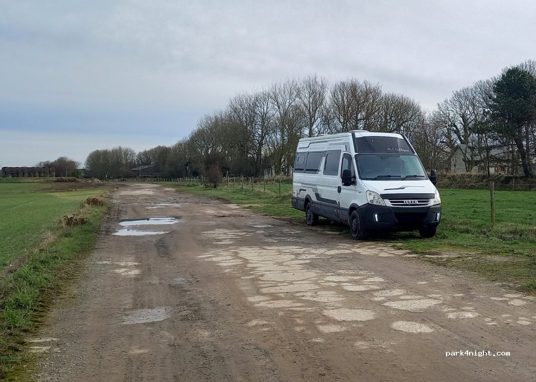 Une nuit avec un CC et un van. Très calme l’endroit est plat et très calme pour dormir. Pas de passage à part l’agriculteur en soirée. Très belle vue