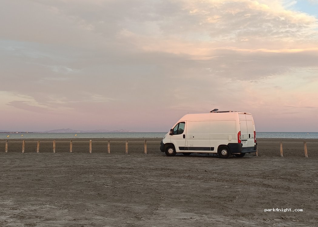 riesiger Parkplatz! Eine Gebühr wird nur zwischen 9 und 17 Uhr kassiert. Man steht quasi direkt am Meer und hört die Wellen, was will man mehr. Leider fand gerade eine private Strandparty mit lautem Techno bis in die Morgenstunden statt, aber das Risiko besteht natürlich immer.