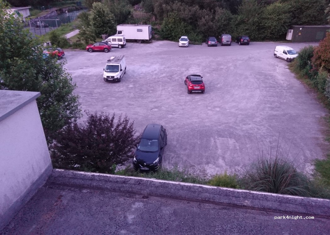 Parking sale et mal fréquenté. Des squatteurs et leurs chiens qui aboient toute la nuit résident sur ce lieu. Parking utilisé par une salle de sport en journée. Ce spot est collé à des habitations dont une grosse résidence. Après 3 jours et 2 nuits avec ma compagne, nous avons écourté notre séjour suite au vol de nos deux vélos. Lieu à bannir du site.
