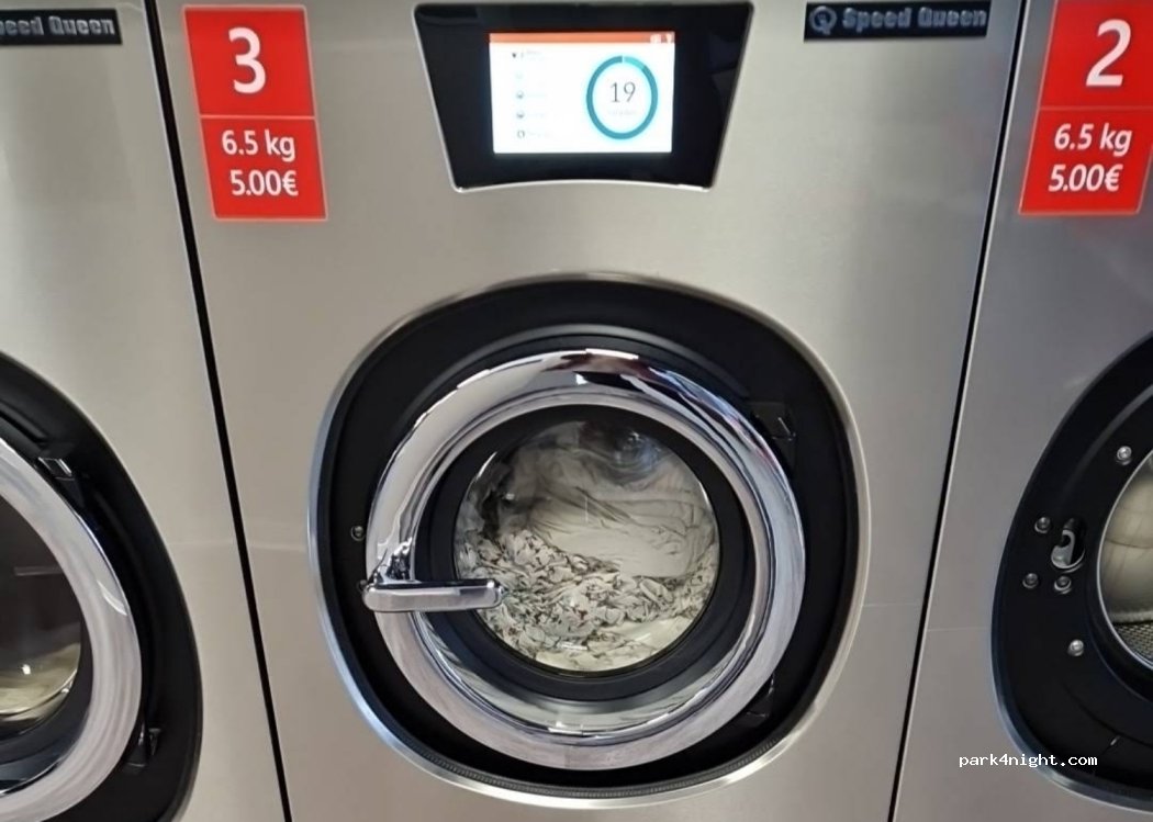 Waschsalon „Speed Queen“, geöffnet von 7:00 bis 21:00 Uhr, gut gepflegt, leicht zugänglich und verständliche Zeitpläne. Zentralisiertes Kontrollpanel, mehrsprachig, akzeptiert Euro aller Nennwerte und Kreditkarten. Mehrere Waschmaschinen bis max. 18 kg, Sie wählen die Trocknungsart, ggf. um weitere 10 Zoll erhöhend.