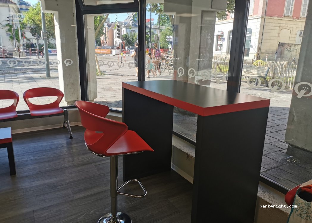 Nickel. Machine à café. Lieu climatisé. Cycle court 30 minutes. Propre et entrenu. Paiement en CB et espèces