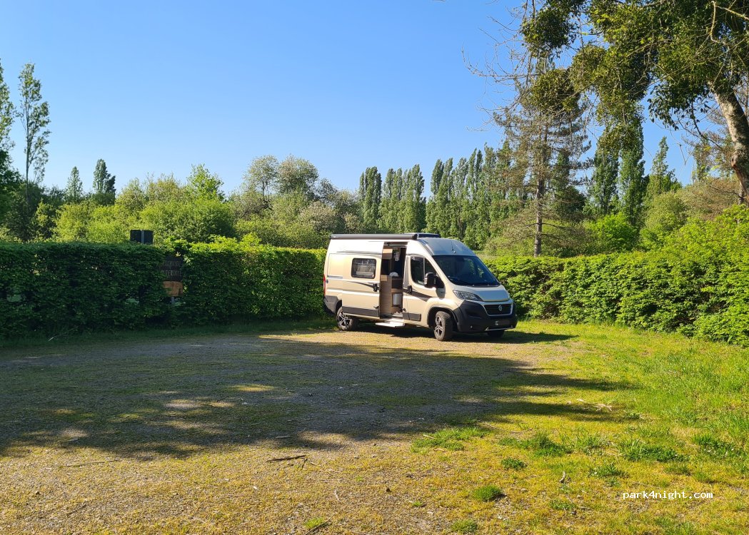 En fait nous avons voulu nous stationner mais le parking est petit et très boueux. De plus, il est en bordure de route assez passante. Nous sommes repartis. A déconseiller pour une halte de nuit.