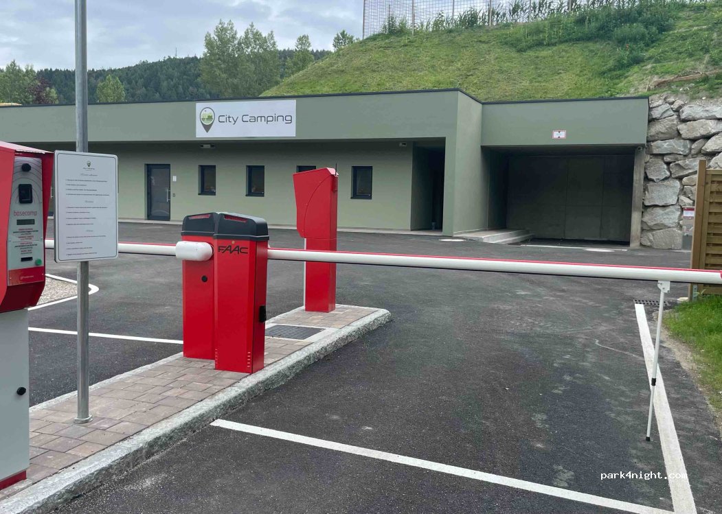 Super emplacement pour une nuit. Nous avons payé 45€ pour deux personnes. Il y a de nombreuses places et les services sont modernes et propres. Le parking est sécurisé, une carte d’accès vous sera donné lorsque vous arriverez. Pensez à vos pièce d’identité afin de vous enregistrer à la borne et pouvoir payer. Le parking est à 10min à pied du centre de Brunico