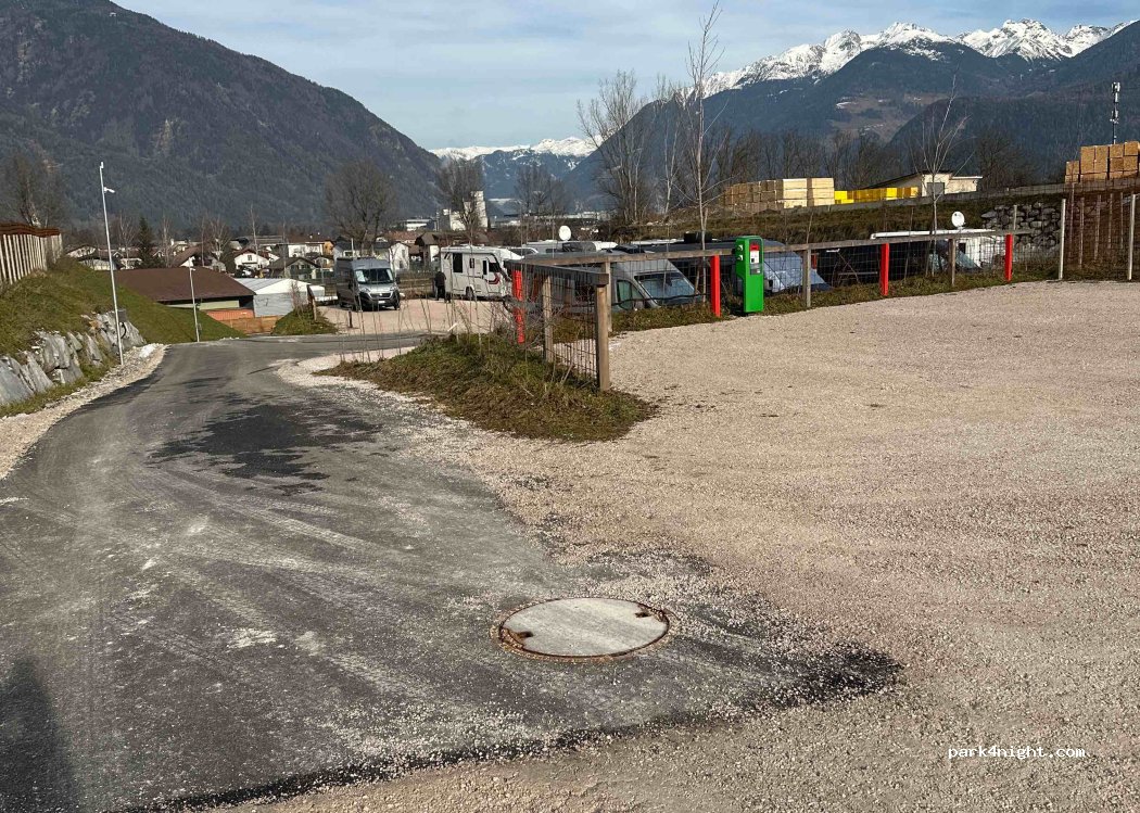 Área de descanso para camper recién inaugurada, muy limpia con instalaciones muy nuevas y bonitas, 15 minutos a pie del centro de Brunico. 30€/24h, servicio de electricidad y ducha a parte; tiene disponible solo servicio de vaciado. Es un poco lio el servicio de check-in/out y recarga de la targeta para los servicios extra ya que no hay personal y todo se hace a través de una máquina. Buen sitio