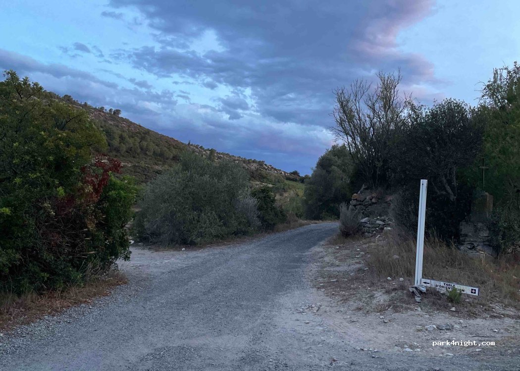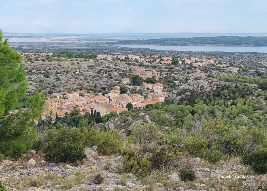 parfait pour la nuit, proche de la route mais sans bruit pour dormir. petite balade vers la table d'orientation qui est à gauche en sortant du spot, avec belles vue sur etangs et mer, Fitou...