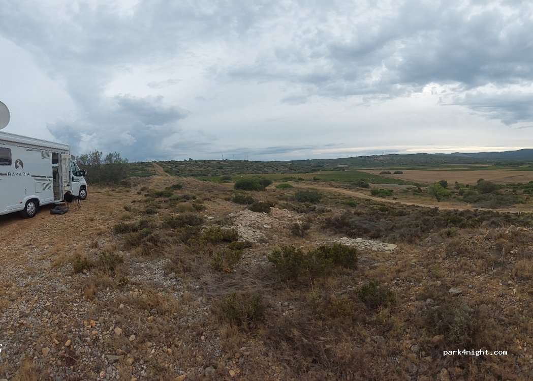 Hidden place in the middle of nature with a stone wall that covers the wind. Near Fitou. At night you can see the town's castle illuminated. Some sites with some slope. Very little busy but close road.