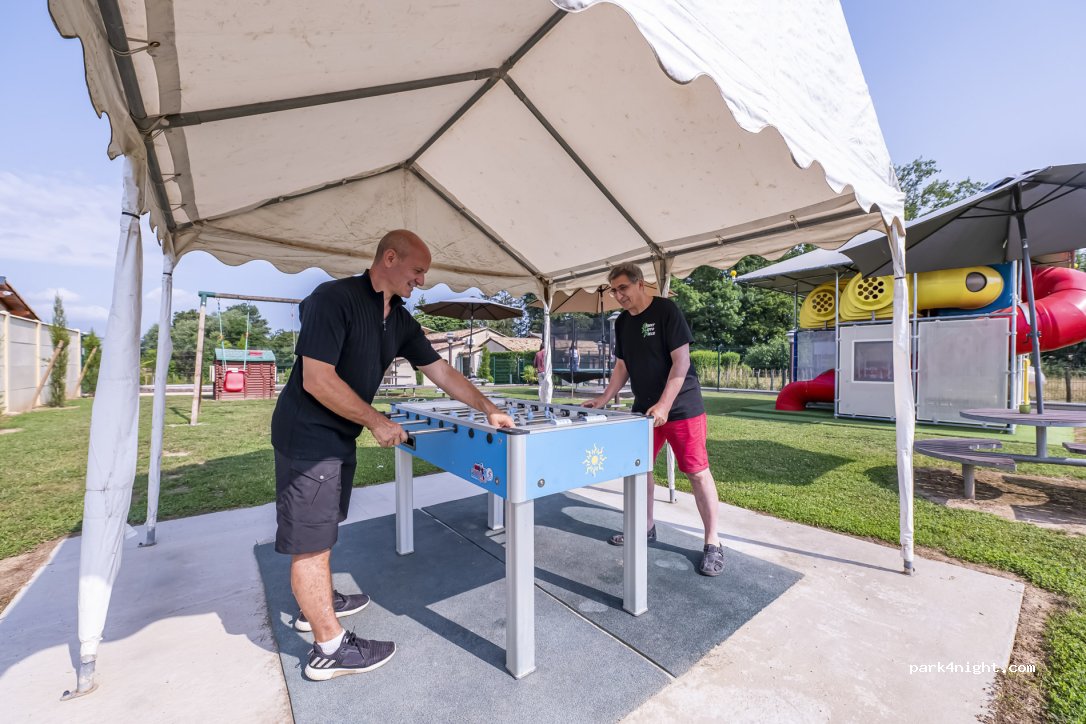 We offer 6 pitches, next to a family hotel, in a secure, gated car park with video surveillance, by a river and a private pond, set in a beautiful tree-lined park.