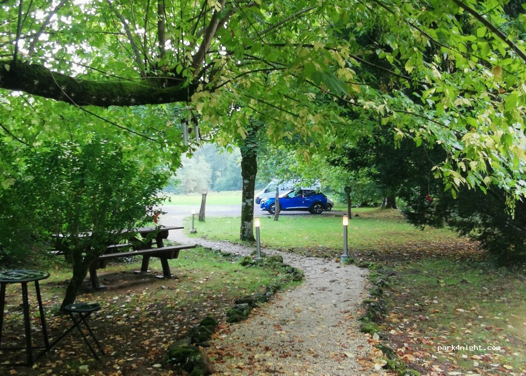 Belle aire de pique-nique juste avant Rochechouard au bord du ruisseau après un vieux pont. Au moins 10 tables de pique-nique, également à l'ombre, le long du petit ruisseau endigué. Pas d'interdiction du jour au lendemain. Espace pour environ 3 mobil-homes plus des voitures supplémentaires. Pas de zones de stationnement délimitées, donc pas de restrictions de longueur.