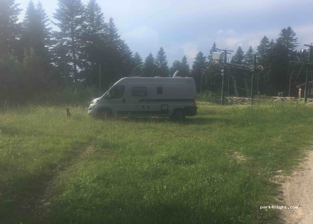 C’est vrai le parking n’est pas folichon… Nous nous sommes installés au dessus du parking sur la place herbeuse au niveau du remonte pentes