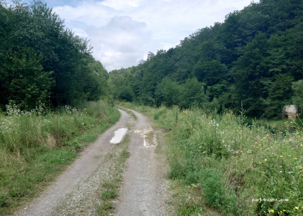 Beautiful spot right next to the Krusnica river. A 20 minute walk from the spring of the river which is worth visiting. Next to a fishing club, a person from the club visiting in the morning and had no issue with us there.