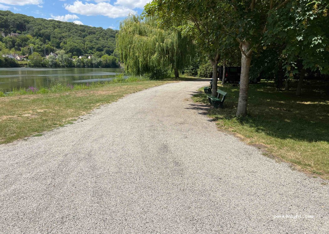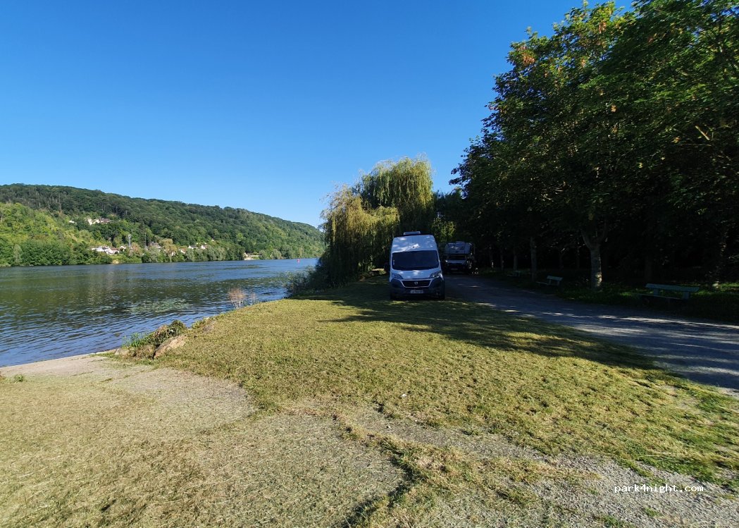 Lieu agréable pas de soucis pour véhicule de 7m. Attention chemin de fer de l’autre côté de la rive de la Seine. Pas de train la nuit, donc calme