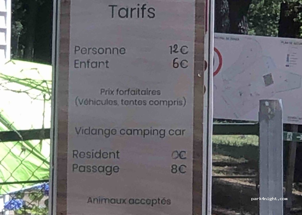 Puur om te staan, zalig, want het zicht en geluid van riviertje is echt fijn. 24 euro voor 2 personen met camper elektriciteit en hond. Als je wil lozen betaal je 4 euro bij. Betalen enz is omslachtig mits het tussen 8u en 1u ‘s morgens moet met enkel Frans sprekende dame. Gemeente personeel dus ja niet flexibel. Sanitair is verouderd en ja als je het zelf niet proper achterlaat is het vuil.