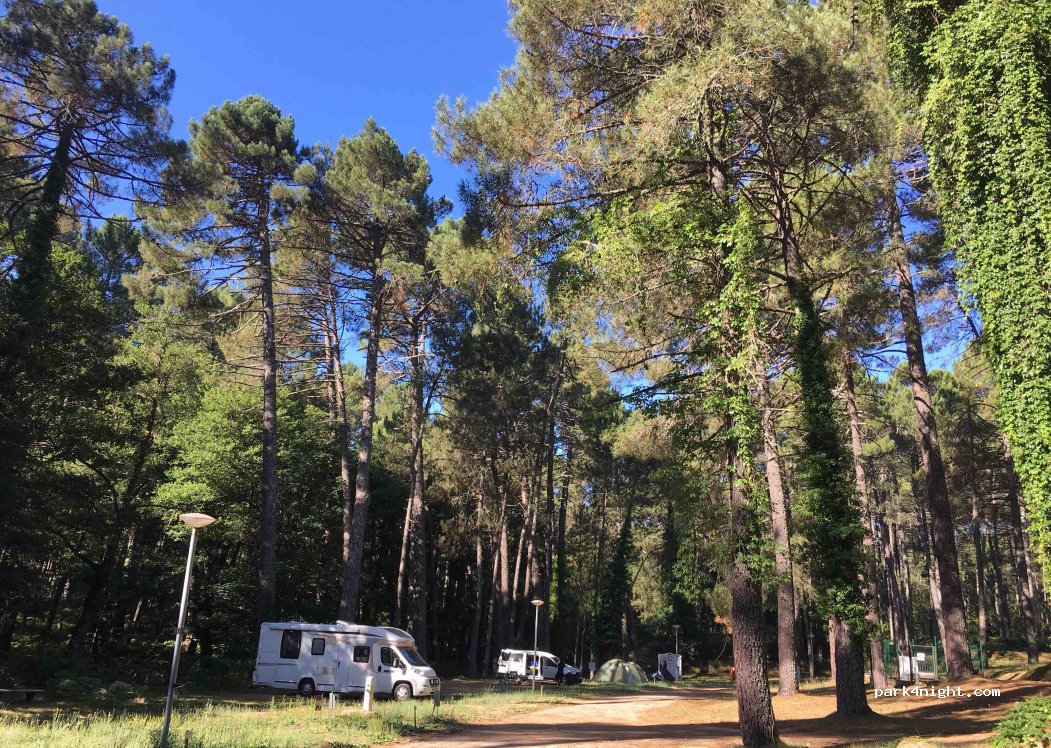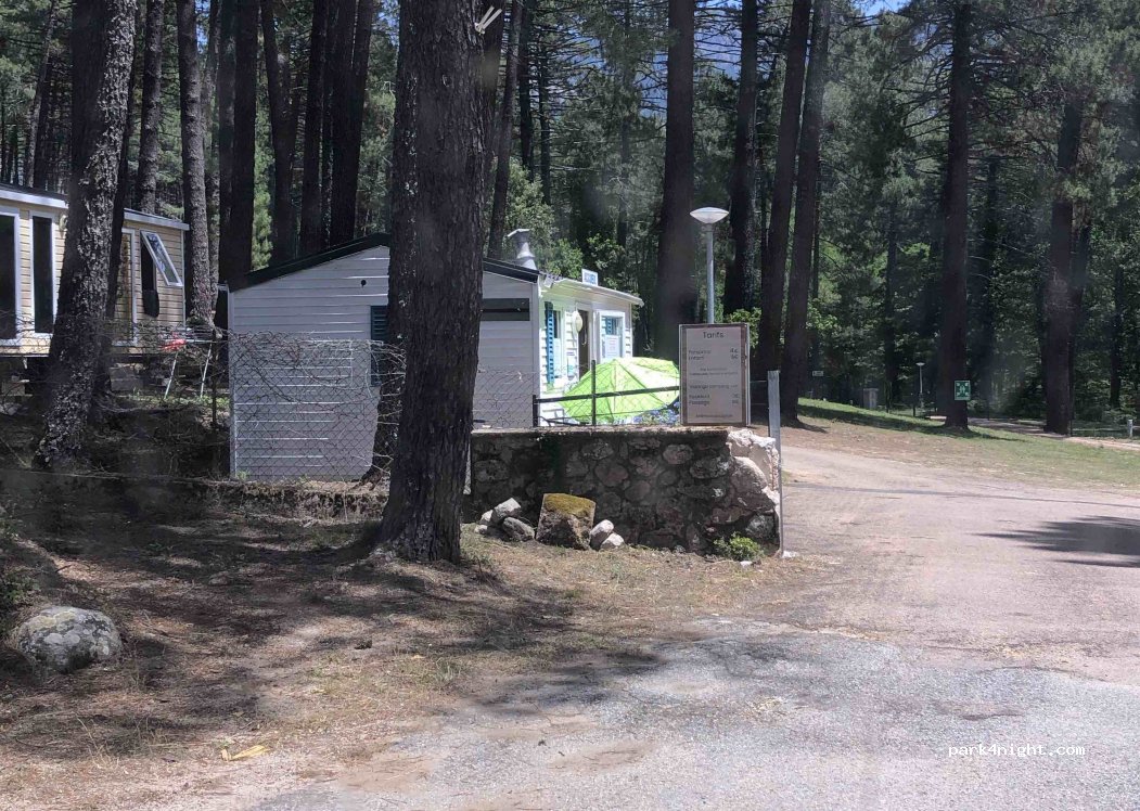 Municipal campsite of interesting Zonza village, 3 km S on D69 road. Majestic pine trees! Old toilets but enough; hot showers. Lot of shadows. Adequate service spot for motorhomes. Price includes electric supply.