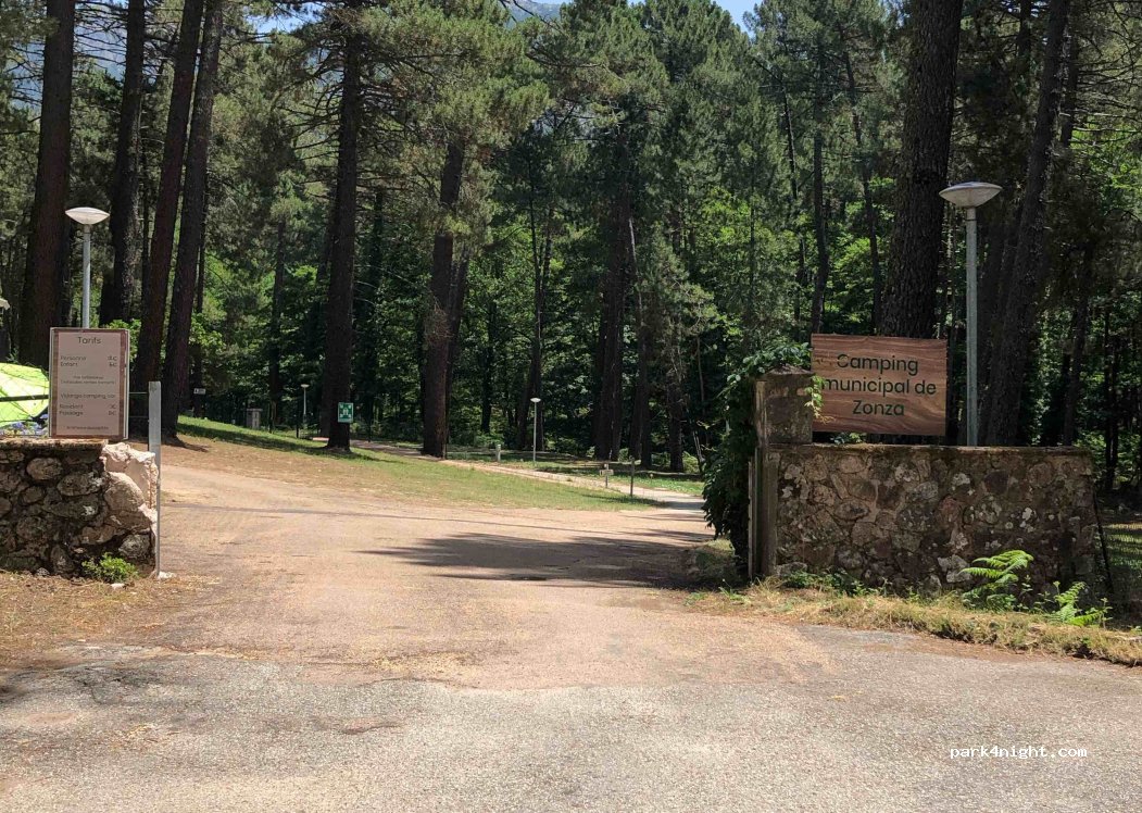 Camping municipal du village intéressant de Zonza, à 3 km au S sur la D69. Sapins majestueux ! Vieilles toilettes mais suffisantes; douches chaudes. Beaucoup d'ombres. Aire de service adéquate pour les camping-cars. Le prix comprend l'alimentation électrique.