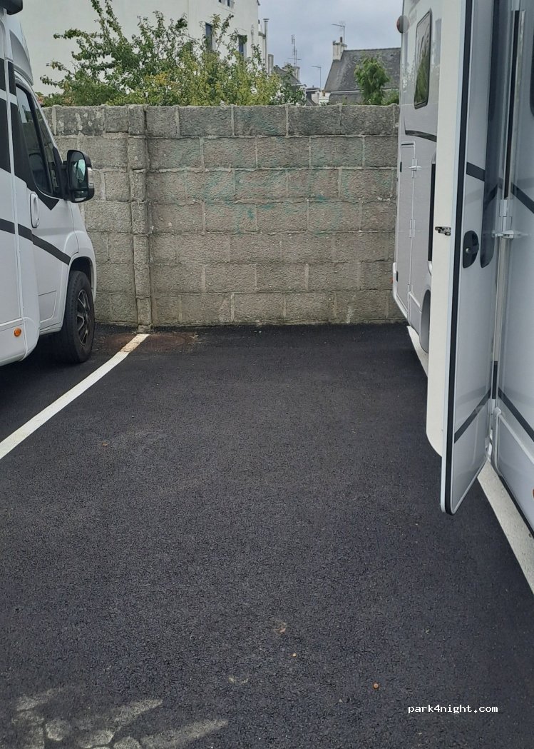 Très tranquille avec eau gratuite et borne électrique pour les commerçants le jour du marché, avec un bon restaurant à côté. Merçi à Lesconil.✌️✌️
