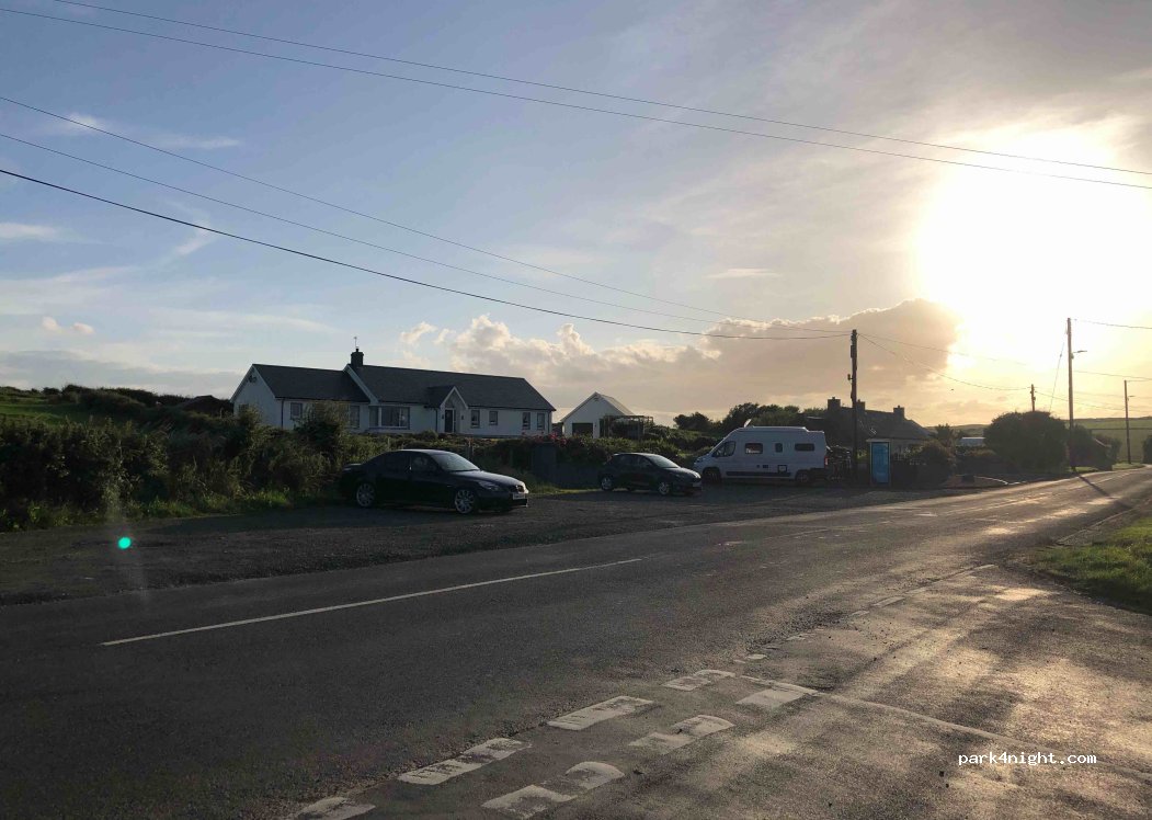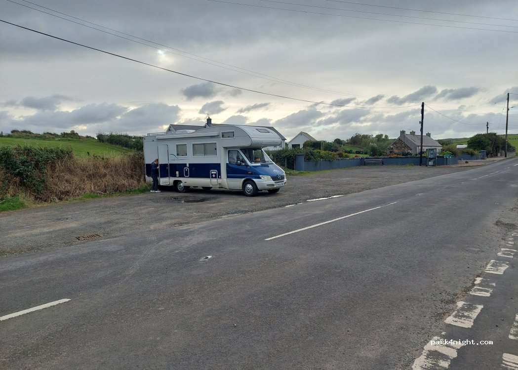 Level car park just off the Causeway Coastal Way with views of the stunning coastline. Garbage can for residual waste on site. Dunseverick Falls is a 2-minute walk away. The cul-de-sac leads to Dunseverick Harbor for fresh water refills and toilets. Camping is prohibited here.