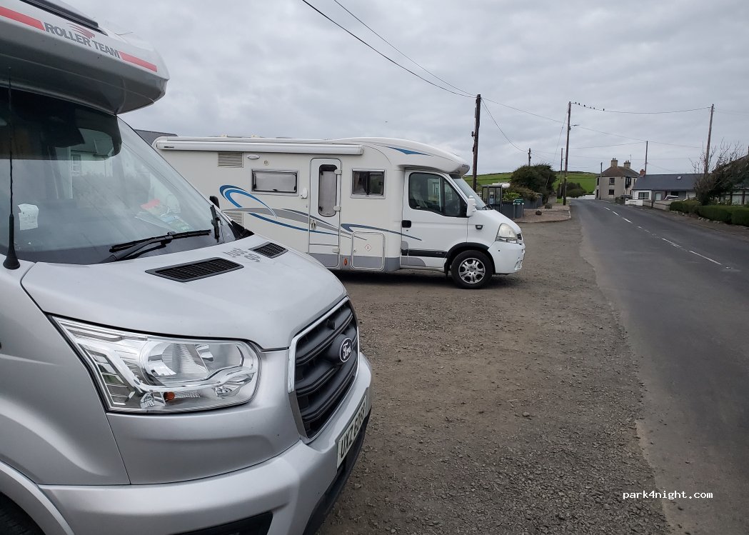 Ebener Parkplatz direkt am Causeway Coastal Way mit Blick auf die herrliche Küste. Abfalltonne für Restmüll am Platz. In 2 Gehminuten erreicht man die Dunseverick Falls. Über die Sackgasse gelangt man zum Hafen von Dunseverick, wo man Frischwasser nachfüllen und Toiletten nutzen kann. Campen ist hier verboten.