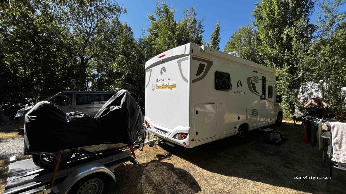 Camping ombragé à petit prix. Parfait pour une escale recharge et douche. Le plus, il y a une piscine.