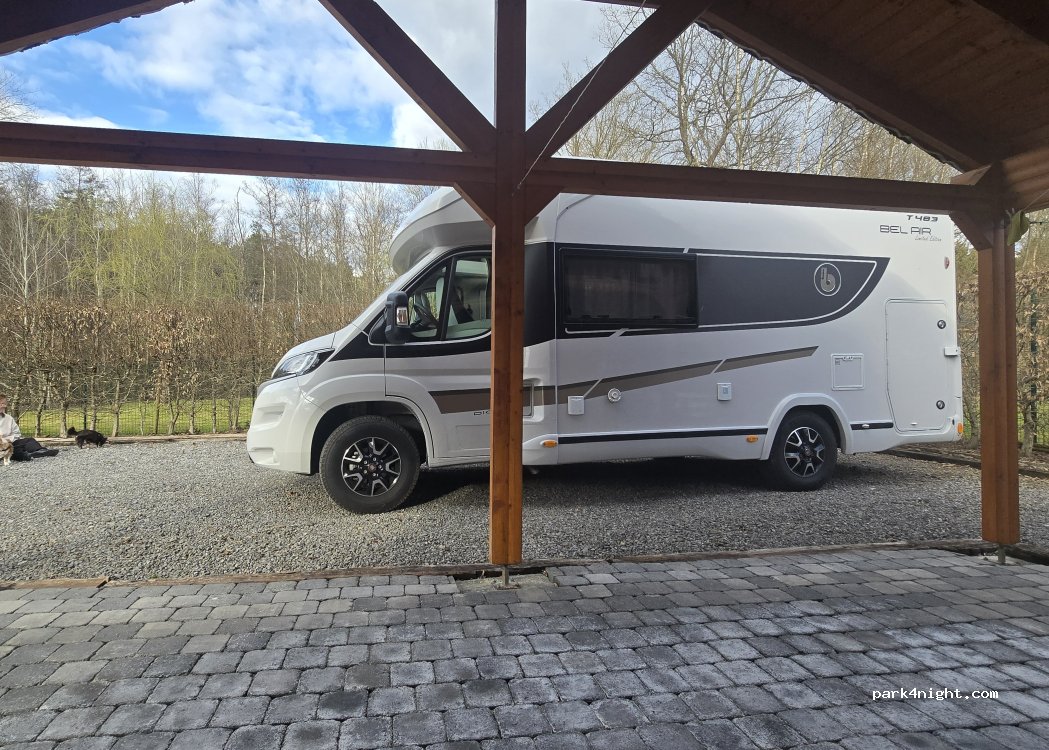 Endroit très calme, à l’orée d’un bois. Un car-port permet de s’abriter en cas de mauvais temps.