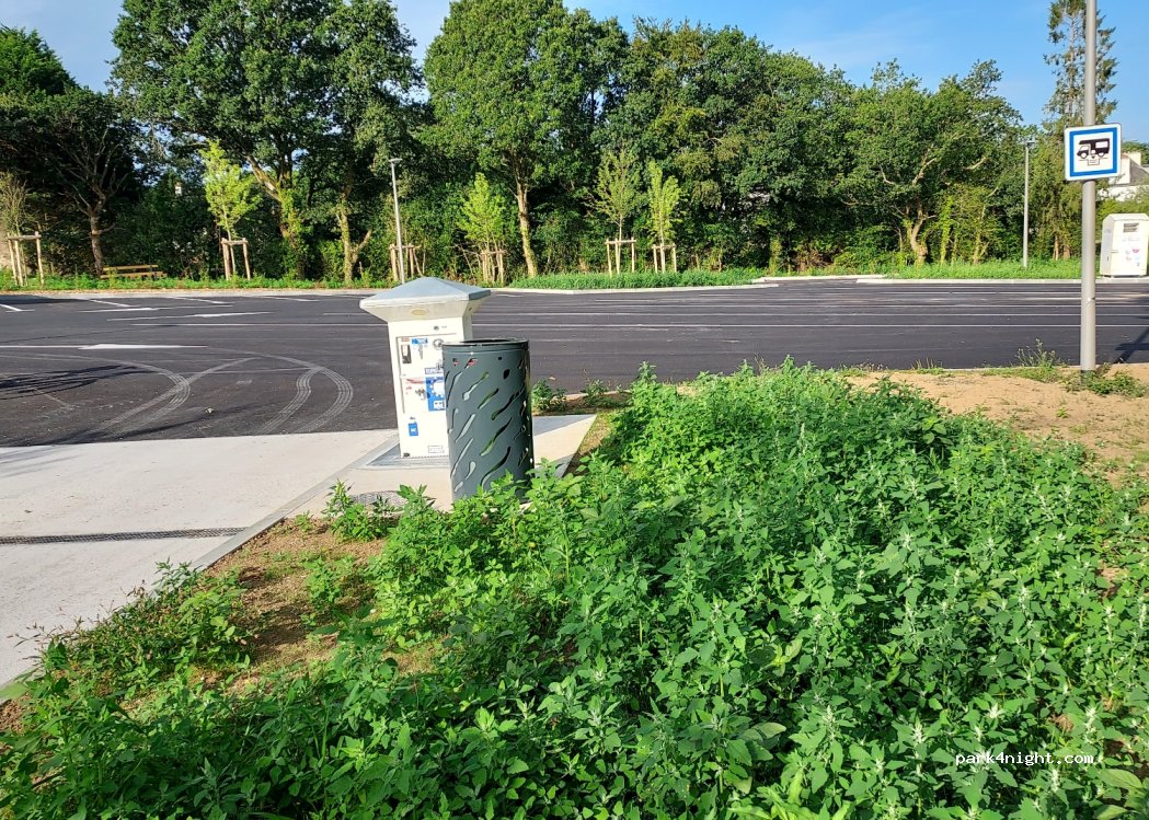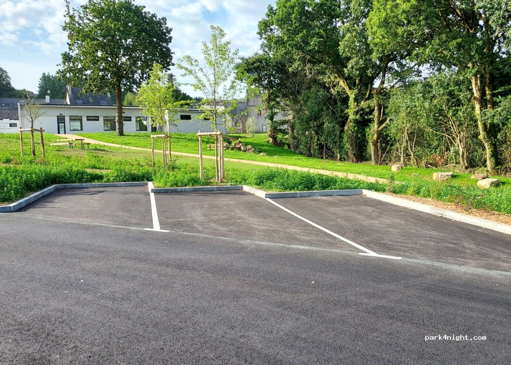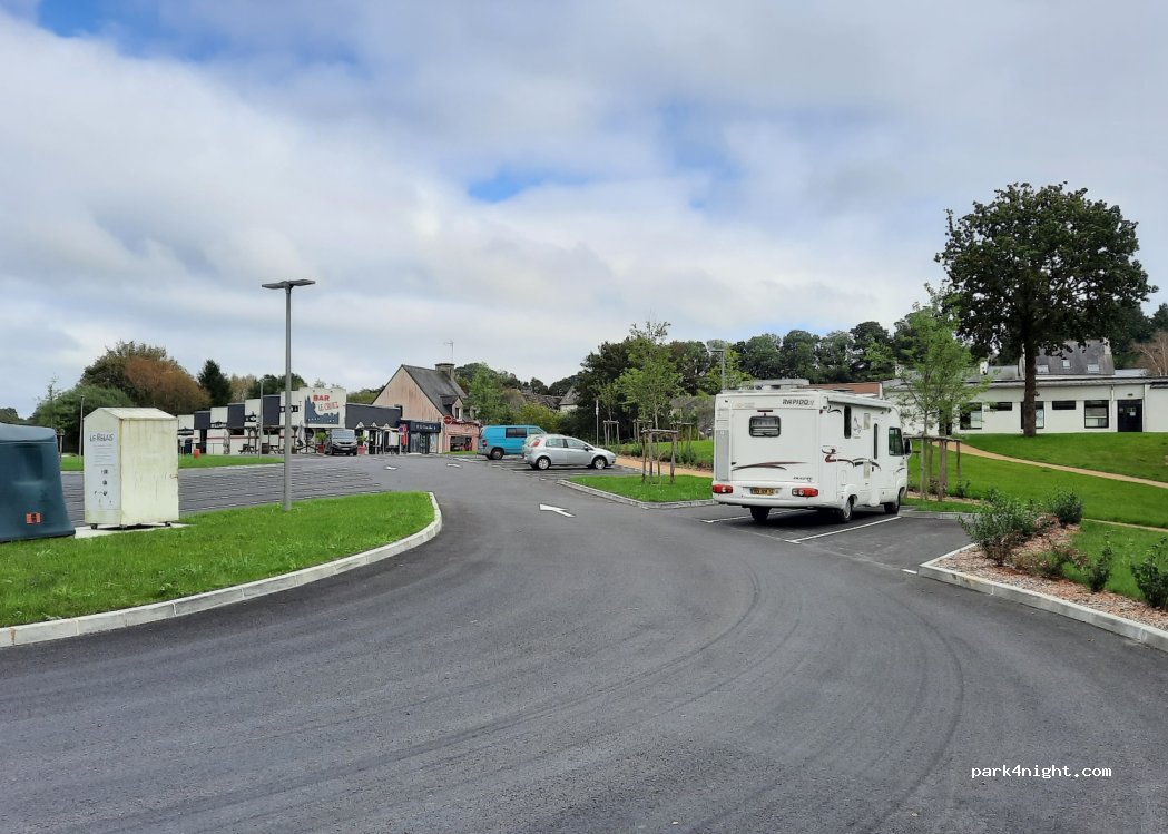 Jolie aire de stationnement, très proche de la nationale 165. Trois places, proche d'un bar et d'une boulangerie. Merci à cette petite commune,pour son accueil. Vidange propre et facile d'accès.