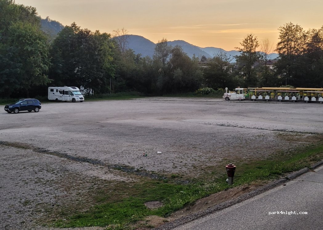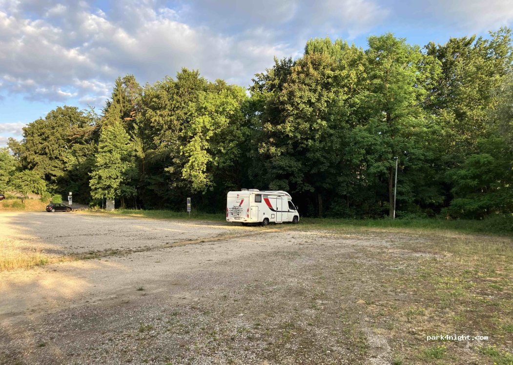 As it's writen, large parking place. Quiet during night. 2 € at You leaving Nice walking to the center of town and other place close to the lake