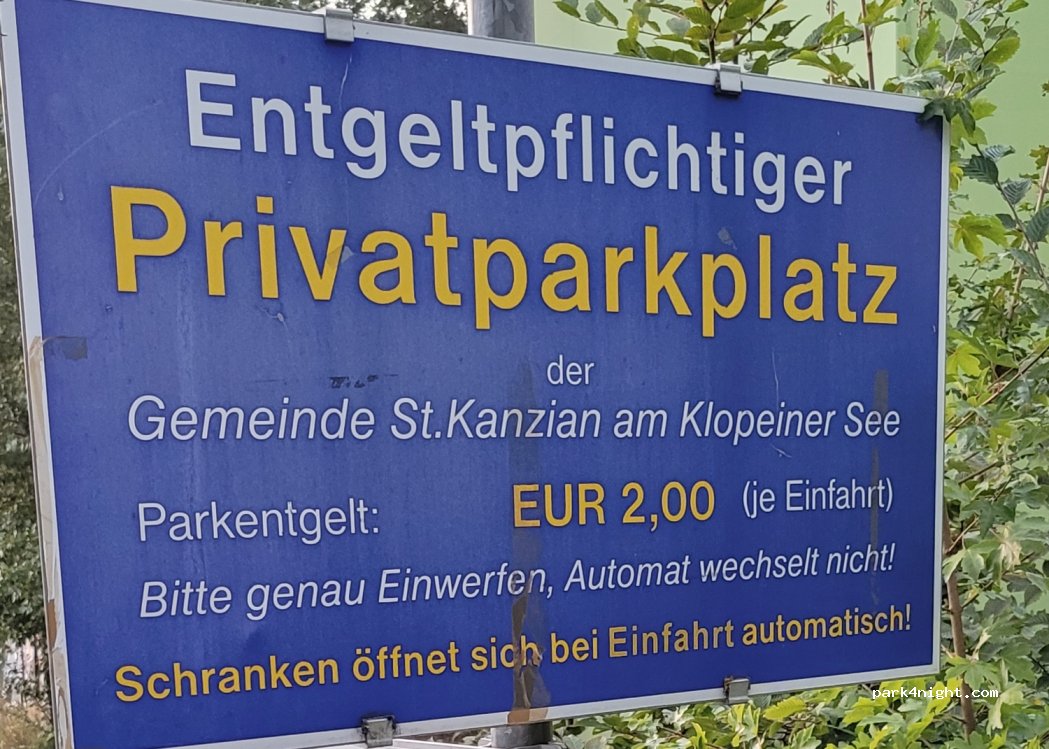 Sehr großer Parkplatz (an der Einfahrt darf man 12 Stunden parken und sollte an der Ausfahrt die Gebühr zahlen - die Schranken sind aber permanent geöffnet) Habe hier während unseres Klopeinersee-Urlaubs eine Nacht verbracht. Die Nacht war sehr angenehm ruhig