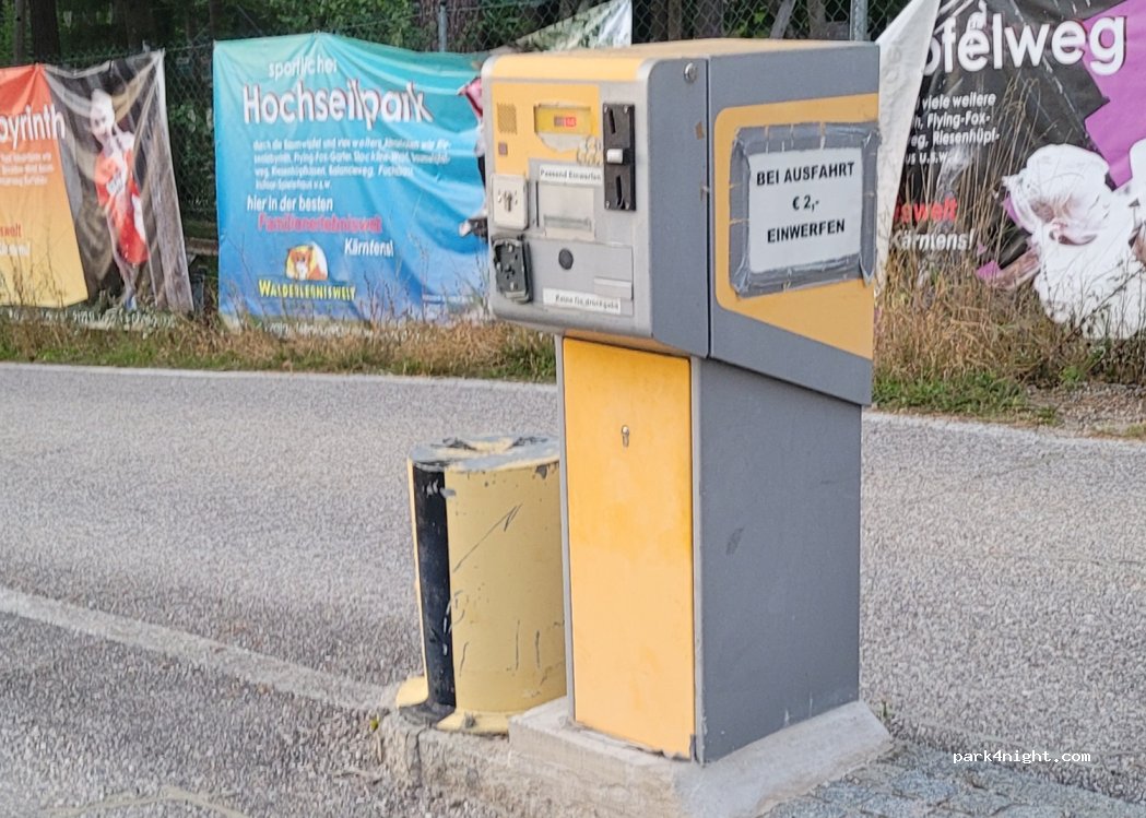 Very large parking lot (you can park for 12 hours at the entrance and pay the fee at the exit, but the barriers are always open). I spent one night here during our Klopeinersee vacation. The night was very pleasantly quiet.