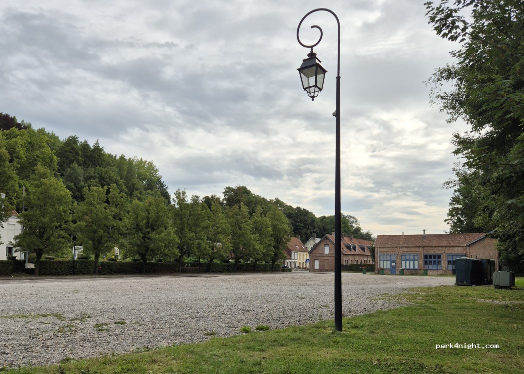 emplacement grand (merci de vous garez correctement = apprécié des habitants), poubelles à dispo, 4G ok , boulangerie au top, idéalement situé proche de st omer, la coupole et planétarium parfait pour 1 ou 2 nuits