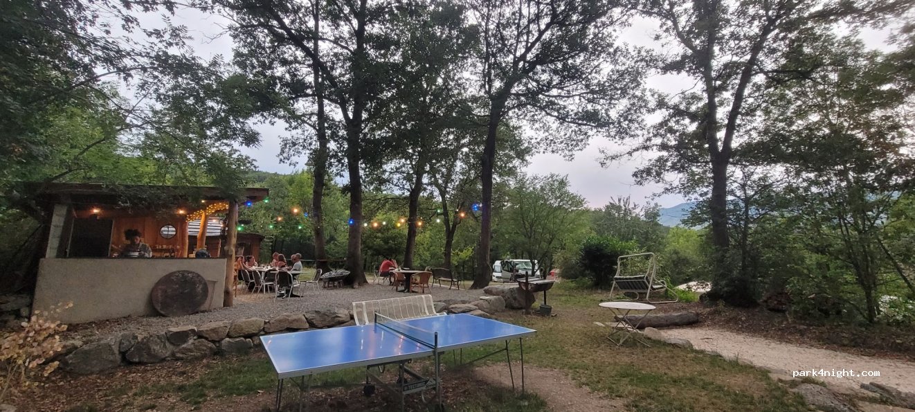 Geweldige plaats. Nette douches schone toiletten algemene buitenkeuken. Aan klein riviertj extra gat gegraven om in af te koelen. Zwembad van 3x5 meter. Mooie omgeving om te wandelen. Zeer vriendelijke eigenaren. Frans engelstalig nederlands (Vlaams) en Frans. zeer hondvriendeljjke camping. we hebben genoten van de verhalen van David over het onstaan van de camping en zijn reisverleden.