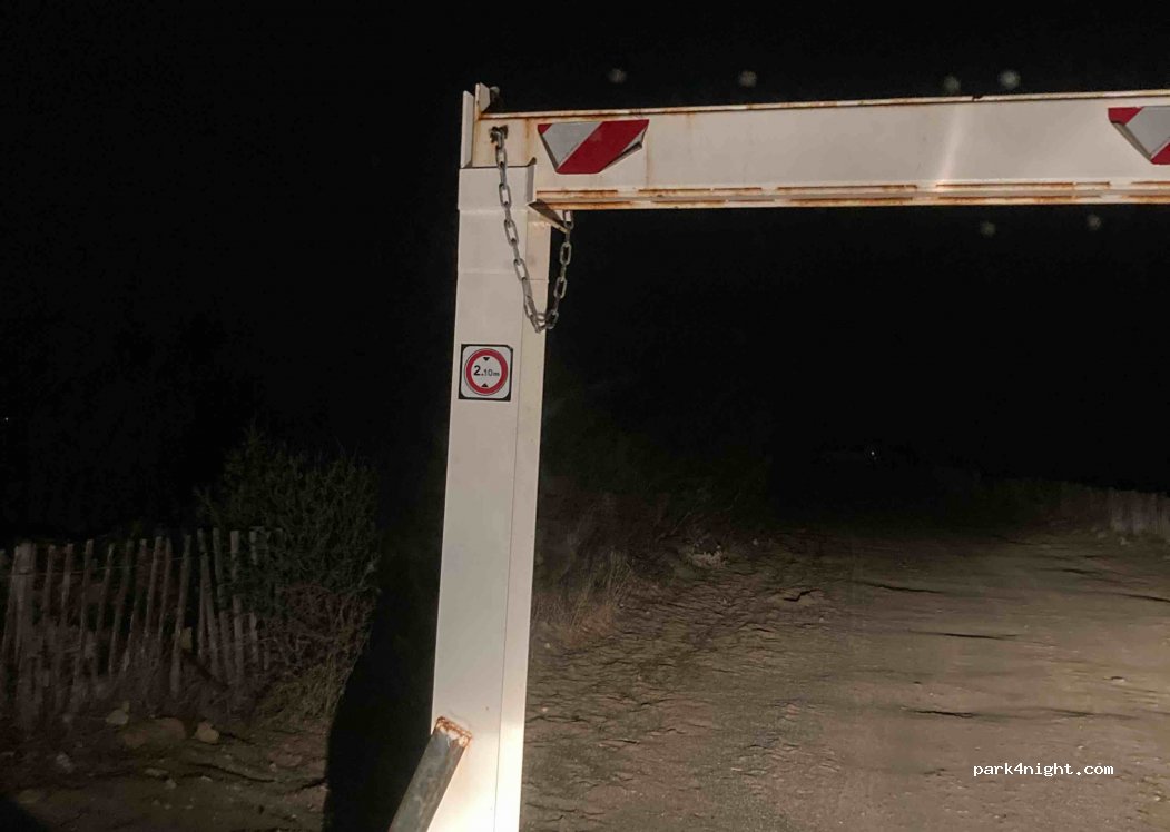 Beach bar parking lot. Very crowded in July and August. Height barrier at 2.10 m.