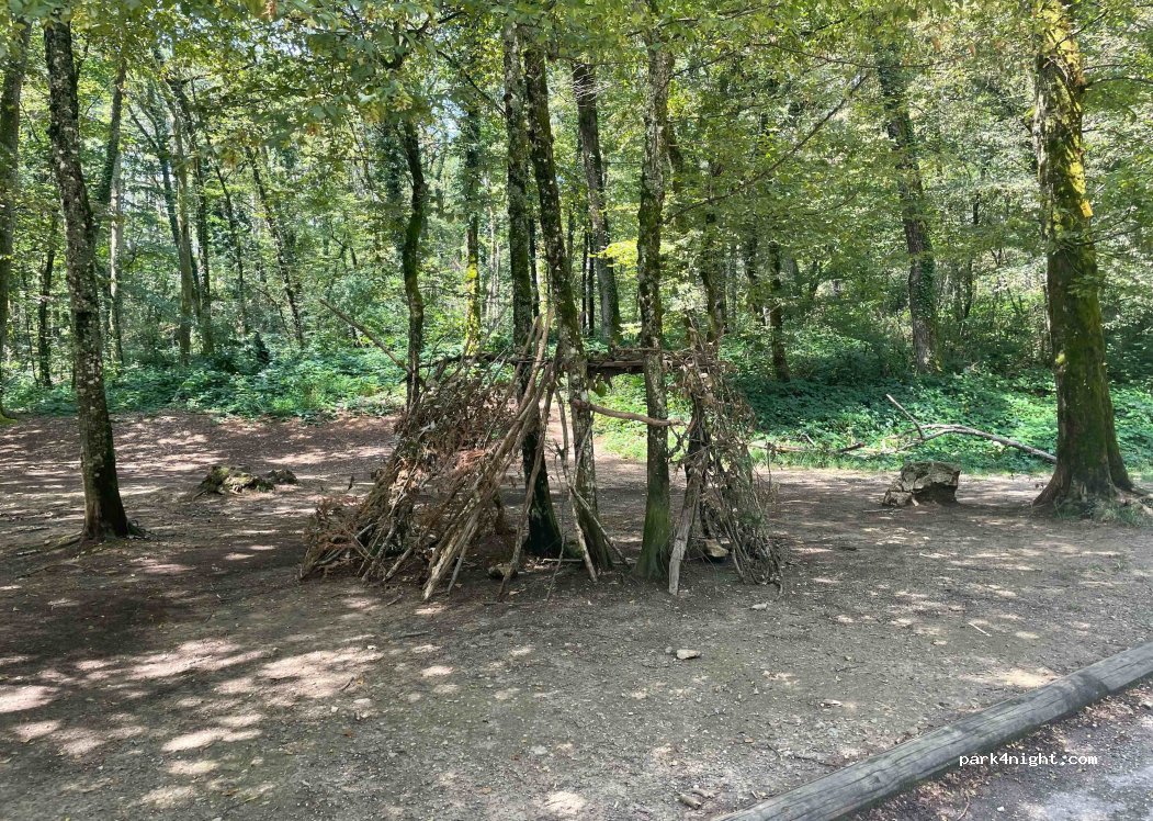Stationnement asphalté juste à côté de la forêt. Accueil de plusieurs excursions. Assez calme la nuit et le jour.