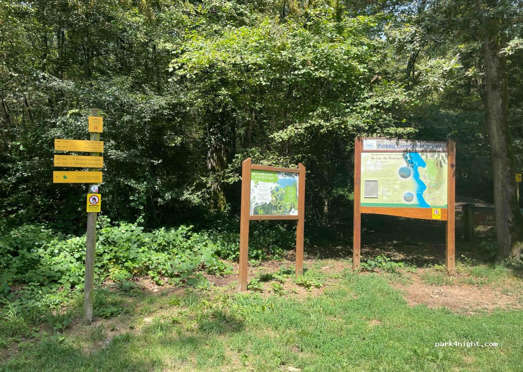 Super endroit où nous avons passer la journée et la nuit. Aucune interdiction. Table et banc de pic nic + départ de plusieurs randonnées. Nous étions seul en plein mois d’août. Possibilité de rejoindre la plage de mémard et le centre de aix les bains en vélo mais ça monte très fort pour revenir..